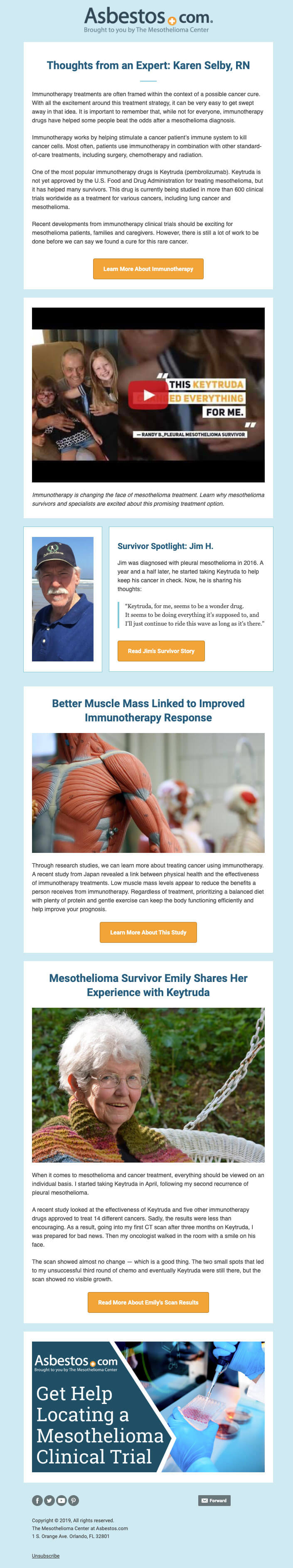If you are looking for mesothelioma support, please contact our Patient Advocates at (855) 404-4592